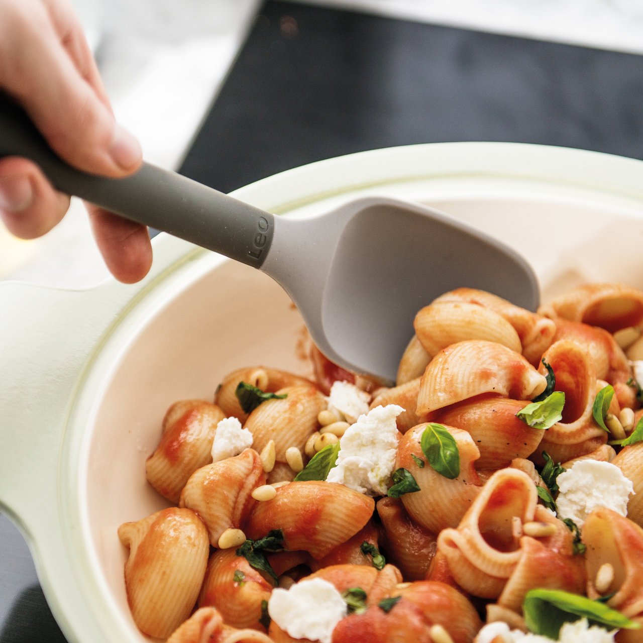 Serveer puree, rijst of een lekker stoofpotje in een handomdraai met de opscheplepel van Leo! De hittebestendige siliconen lepel maakt geen krassen op je delicate kookgerei en de zachte rubberen handgreep garandeert een comfortabele grip wanneer je het eten opschept. Ben je klaar? Dan mag de opscheplepel samen met je pannen in de vaatwasser en kan je hem daarna ophangen aan een haakje dankzij het handige lusje in de steel.